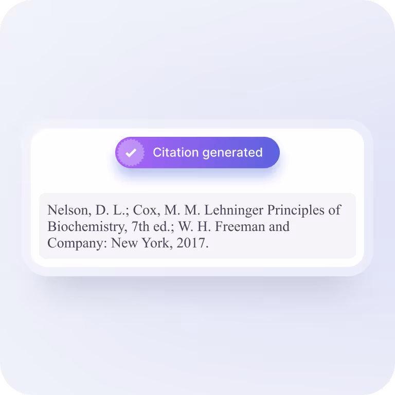 It is an AI-powered tool that automates formatting by instantly generating an accurate citation in the American Chemical Society (ACS) style. The generator is perfect for students, educators, and researchers who want to save time and ensure consistent references for their work. You can cite books, journals, web pages, and even lab reports by simply adding source info.