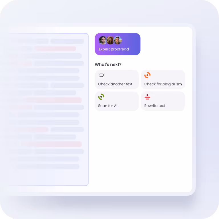Easy! Just paste your essay into the tool or upload it as a document. Click "Check" and get an in-depth analysis of your work within seconds. The tool shows which parts need to be fixed and offers suggestions for improvement. You can accept all changes at once and copy the refined text in one click.