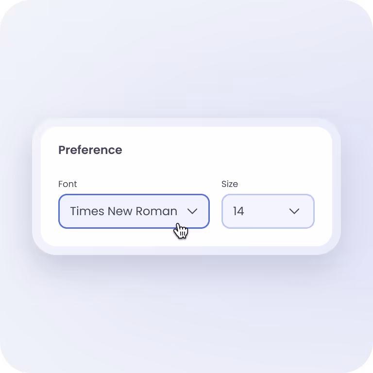 Pick the kind of material you’re referencing, whether it’s a book, journal article, or website. You can also adjust small settings, like font and its size.