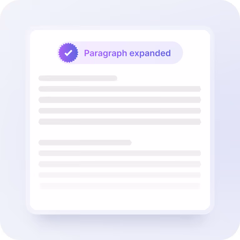 Pick the length and tone you want, then click Expand. Our paragraph expander processes your text in seconds and creates a longer version based on your input.